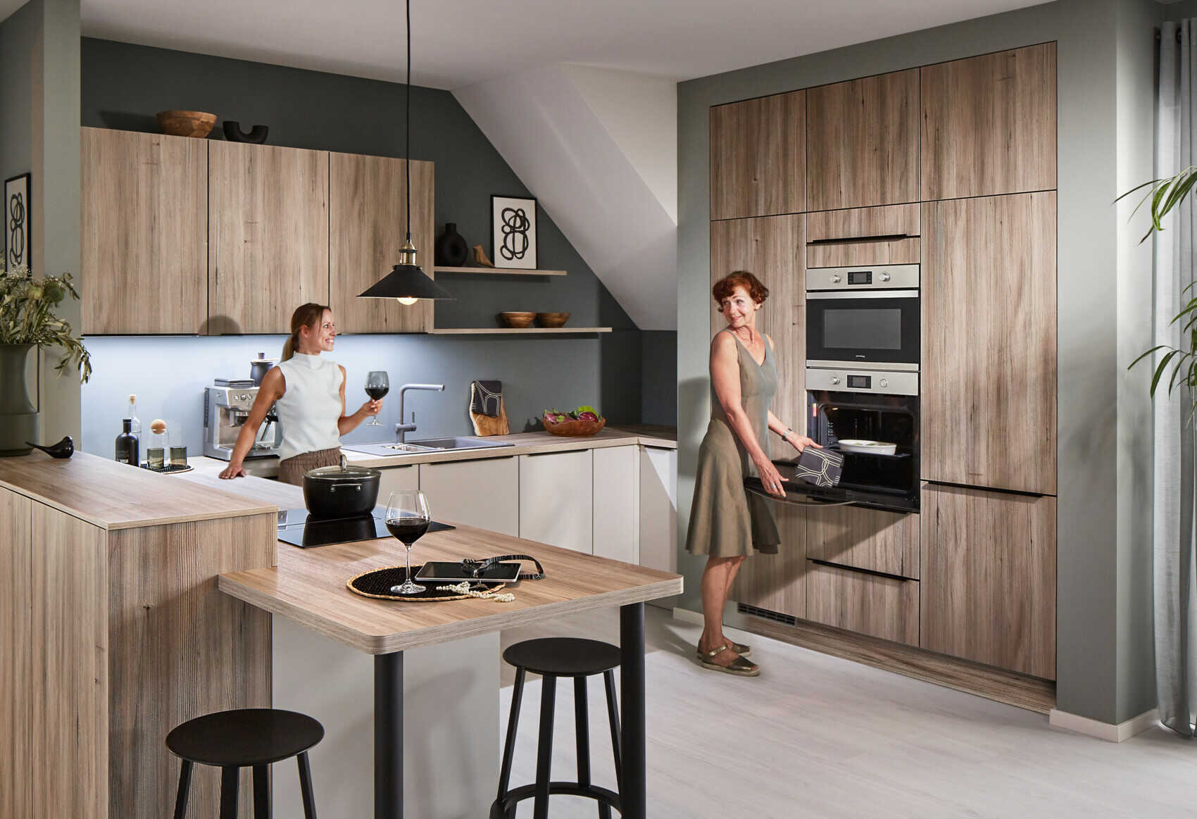 Cooking is great fun in an L-shaped kitchen with a practical countertop bar – a versatile solution that also maximises available space. One benefit of designing kitchens on a smaller scale is the fact that there are fewer surfaces to clean, yet they can still be adapted to suit your individual needs and preferences.