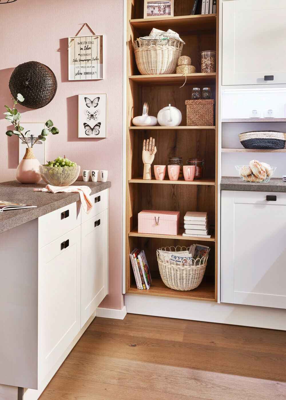 Oak is a versatile wood that comes in a variety of different colours. pino’s Honey Oak radiates warmth and tradition, while the Evoke finish provides a contemporary oak effect with its sleek lines and modern elegance. The Holm Oak finish lends the kitchen a rustic, sturdy character. Oak is a good match for traditional, modern and rustic kitchen interiors.