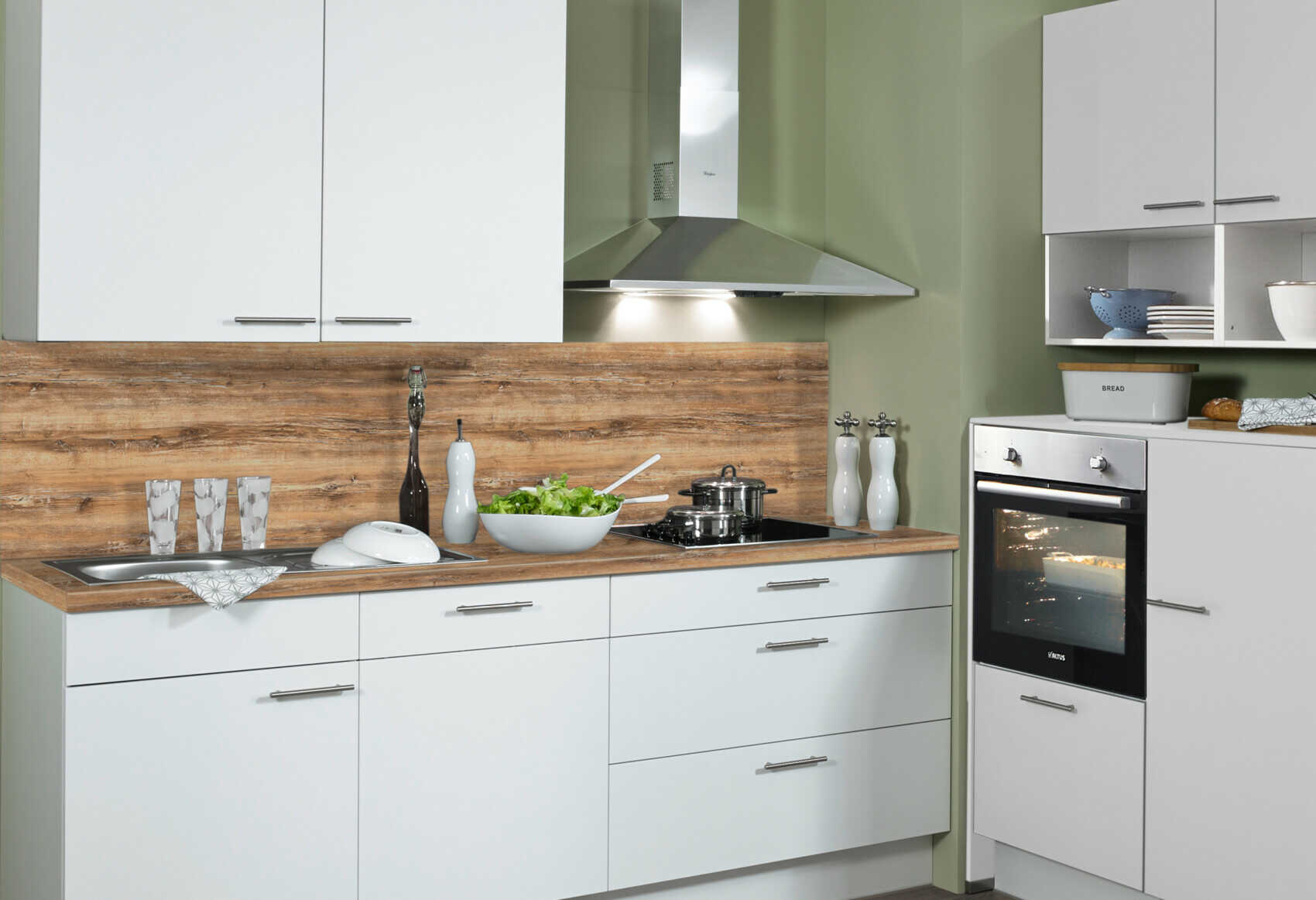 White Oak with a whitewashed finish lends the kitchen a light and airy atmosphere. The soft white nuances that characterise the grain effect create a fresh, contemporary effect. This kitchen work surface is a popular choice for modern kitchens or beach-house styles.