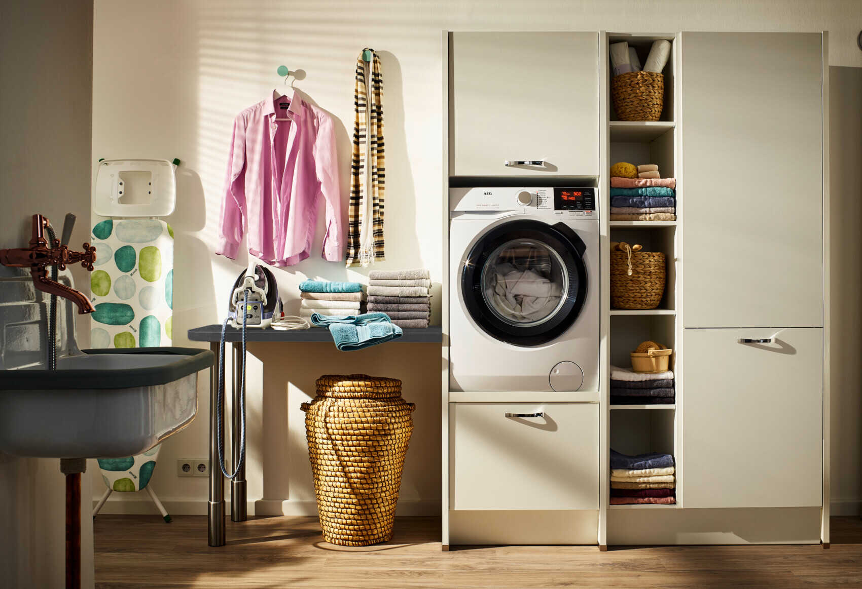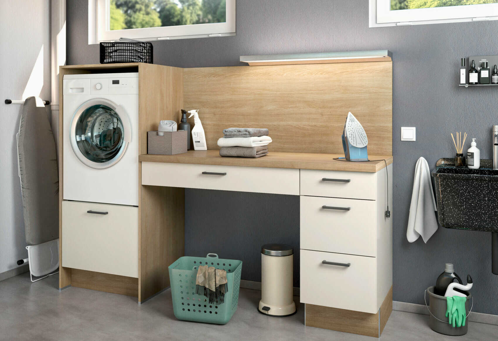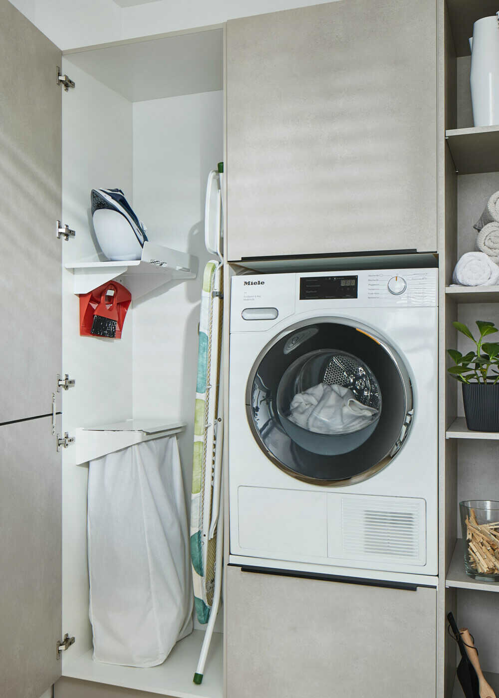 Pratique, mais invisible si besoin. La buanderie parfaite t’aide à régler leur compte plus efficacement et plus silencieusement aux tâches ménagères.