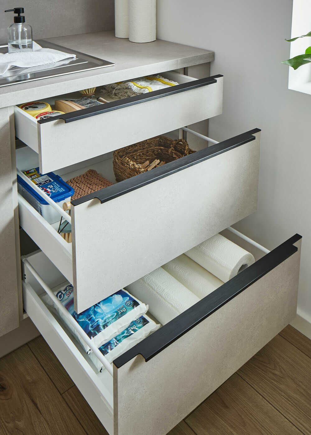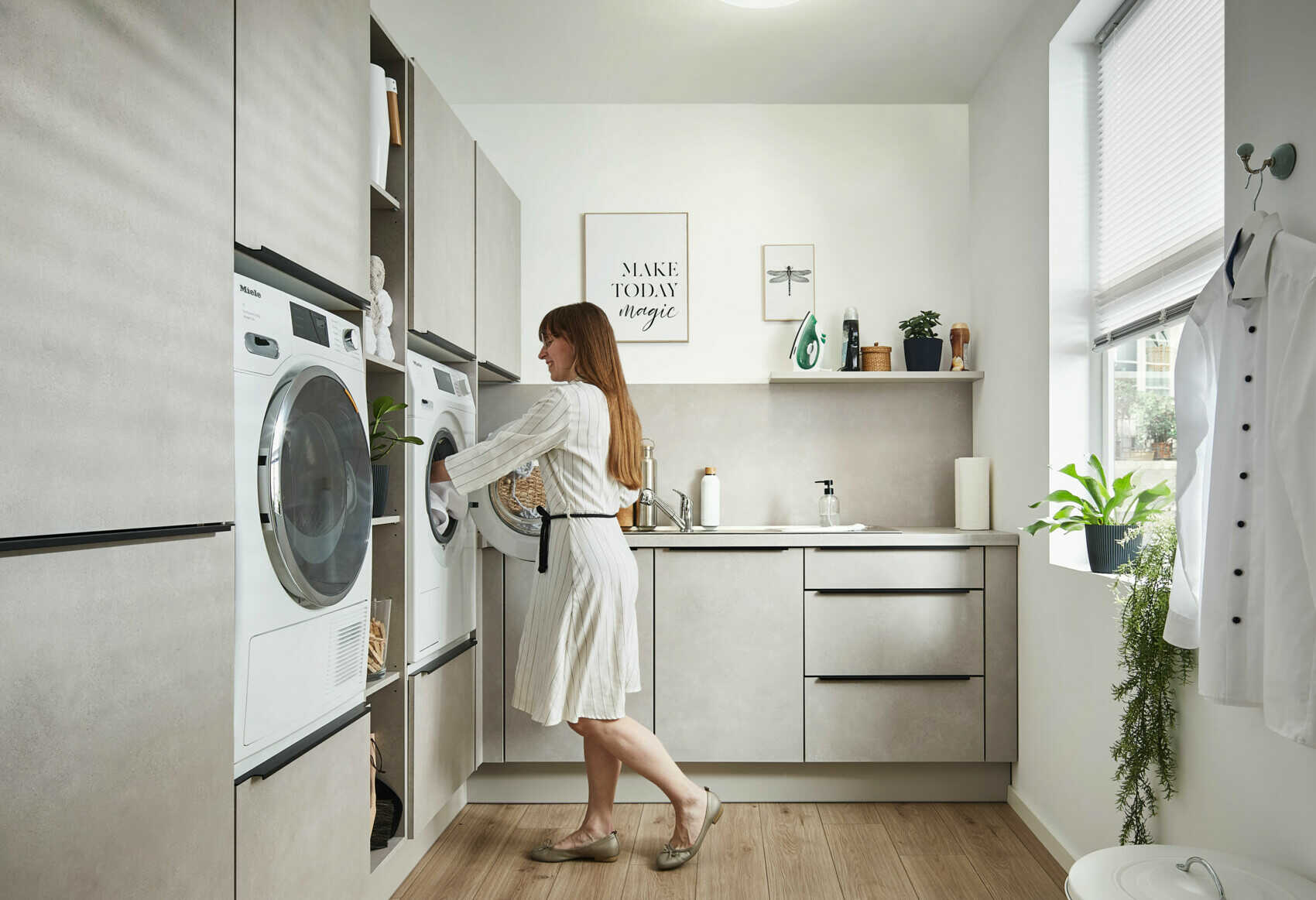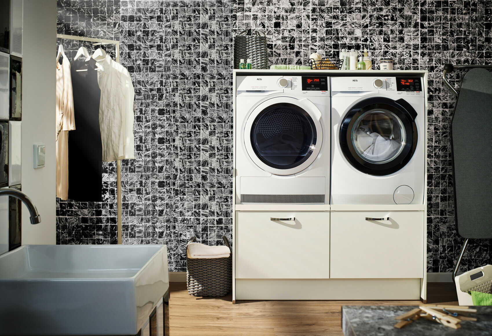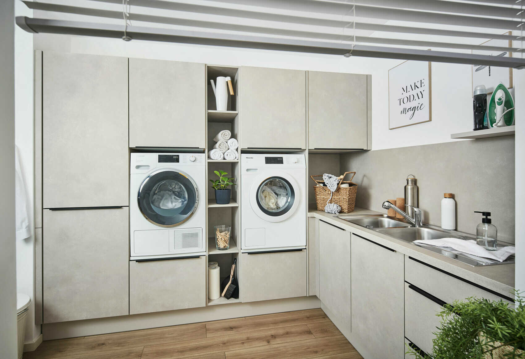 Pratique, mais invisible si besoin. La buanderie parfaite t’aide à régler leur compte plus efficacement et plus silencieusement aux tâches ménagères.